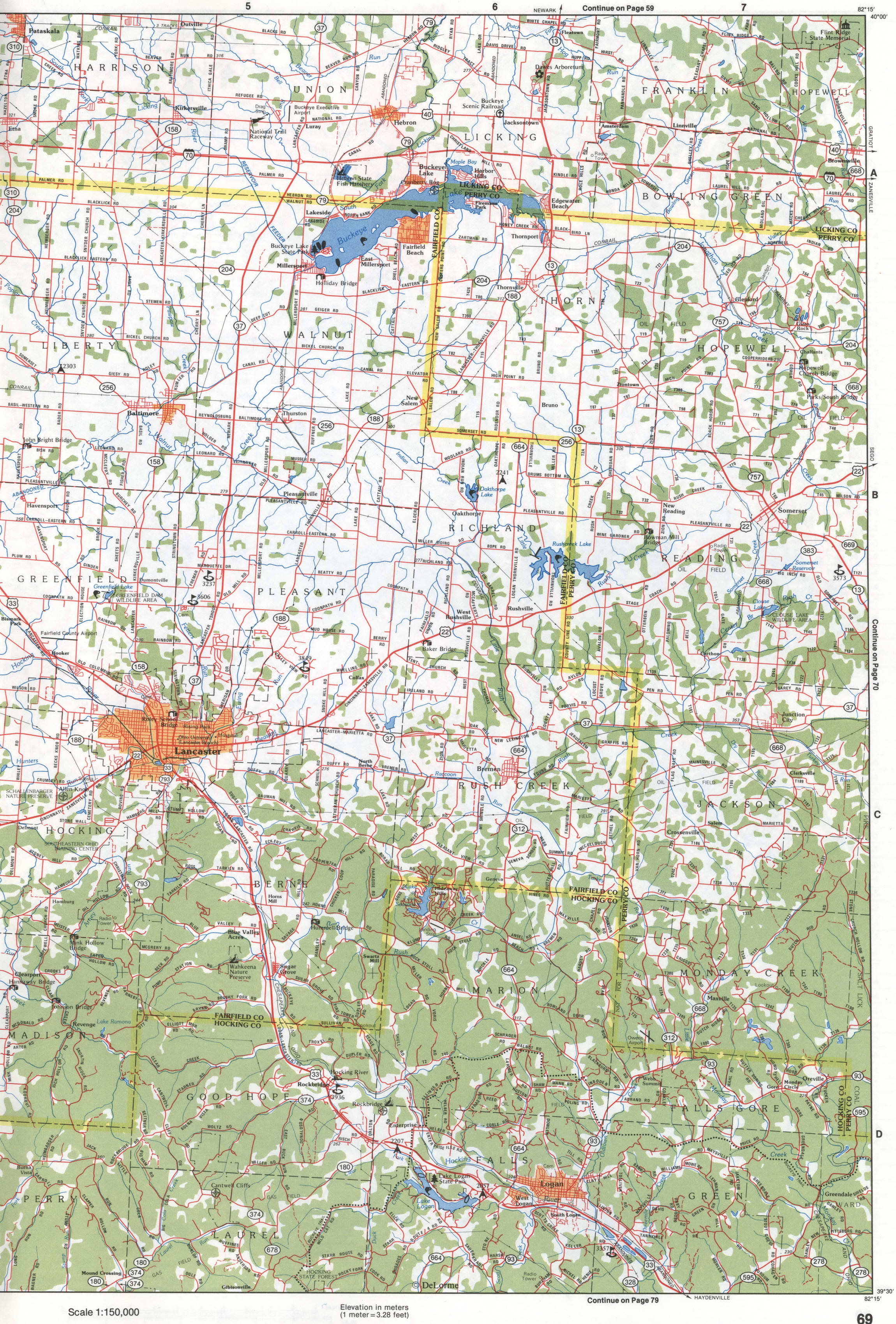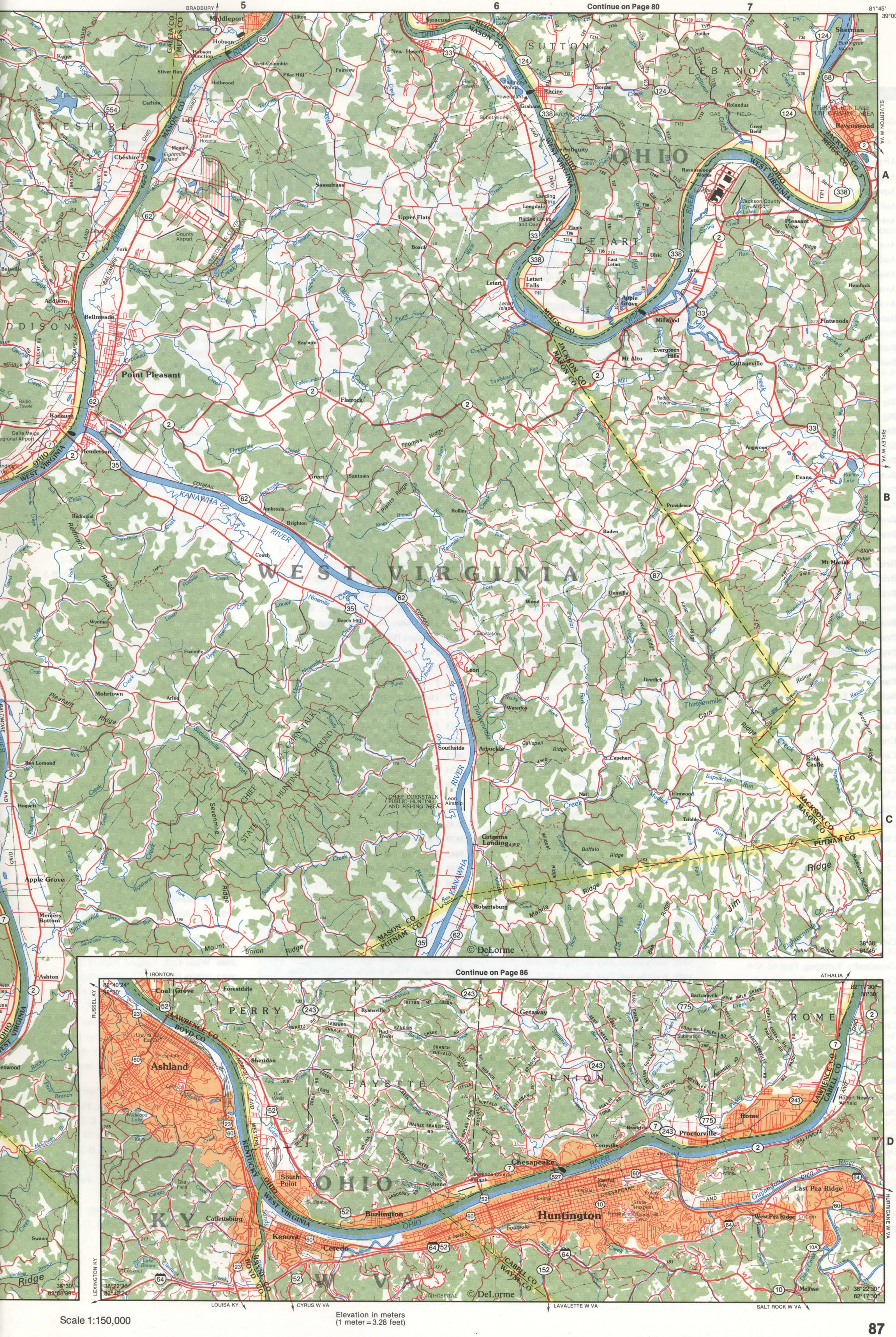 The map of the southeastern region of Ohio consists of 15 large-scale segments.